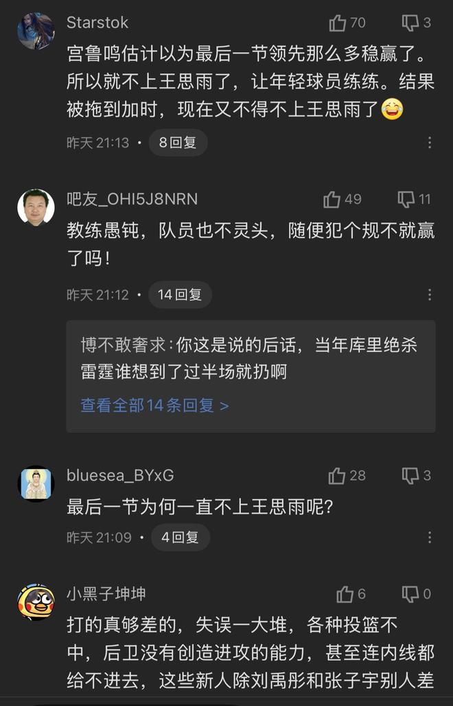 虽然最后赢下了比赛,可其第四节的发挥是不能看,宫鲁鸣教练在赛后遭到了广大球迷们的口诛笔伐。