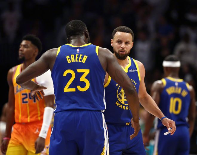 因为他和巴特勒在场打了651分钟,百回合赢4.3分。那很容易算了,巴特勒不在但格林在场时,球队百回合输5.0分!当然,参考标准也可以换成库里,这就是接下来的重点!过去6个赛季,库里不在时,格林明显就是不想打,有些比赛随便找个理由,比如追着裁判问候,就直接申请技犯被驱逐了。本赛季更猖狂,甚至可以在替补席和科尔争吵,包括经常在场上训斥年轻人(行为没错,但格林当下表现不够格),谁给他的勇气?肯定不是科尔,因为科尔没那么大的能力,而是库里!三个方式。