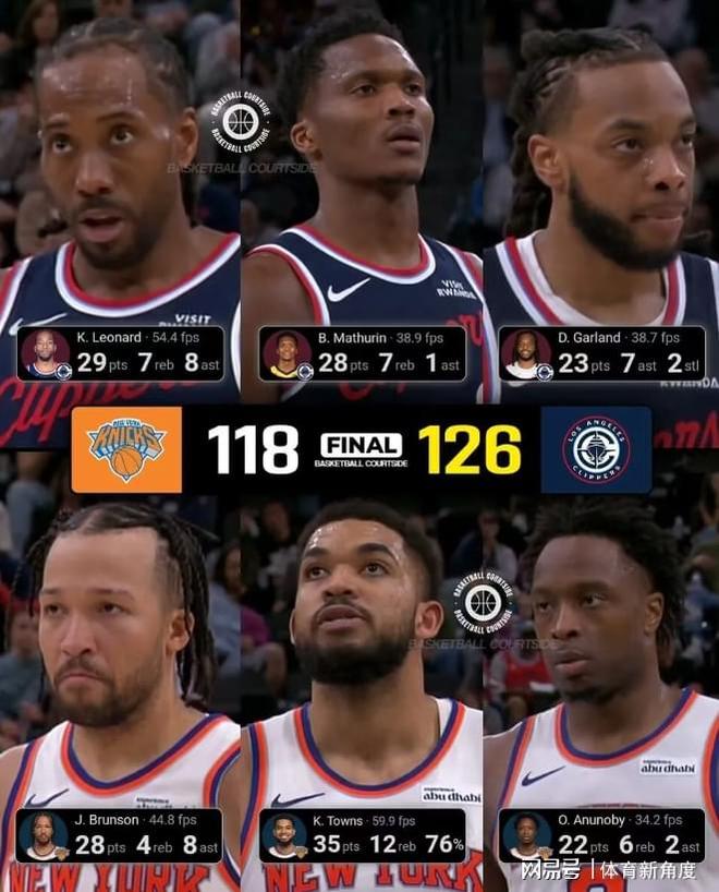 排名第一的是亚历山大,他已连续126场得分20+。尽管与亚历山大的纪录相比,伦纳德的42场略显逊色,但二者有着本质区别。伦纳德是在外界普遍认为他状态下滑、近乎“陨落”之时,突然迎来职业生涯的第二春。11月初短暂养伤归来后,伦纳德仿佛脱胎换骨,状态焕然一新。尤其是比赛中那个晃开阿奴诺比的假动作,简直帅到极致,令人印象深刻!在相关传说情境里提及拜佛之景,若以全景视角来呈现,那画面着实更显壮观。回顾比赛进程,到了尼克斯队奋力追分的关键时刻,当时快船队篮下聚集了多名球员,本以为防守篮板已是囊中之物,可谁能料到,尼克斯队球员却如猛虎下山般,连续抢下进攻篮板,局势瞬间变得紧张起来。