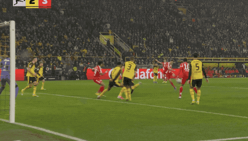 第26分钟,多特蒙德获得前场左路的任意球,斯文松操刀主罚,施洛特贝克头槌破门,这是多特蒙德本场比赛的第一次射门。